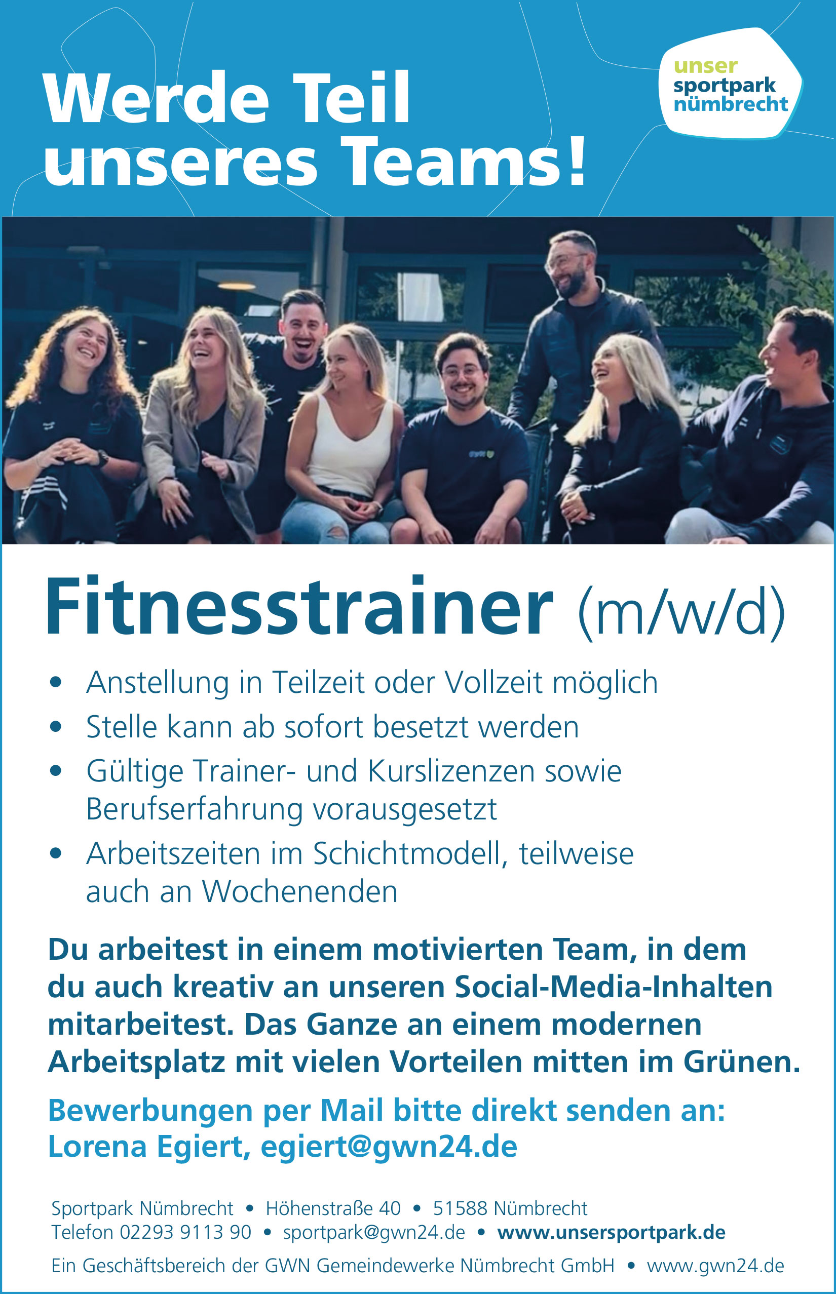 Alle Nümbrechterinnen und Nümbrechter sind herzlich dazu eingeladen, die GWN und damit ihre Gemeinde Nümbrecht bei dem Vorhaben, ein wertvolles Sport- und Freizeitangebot für Nümbrecht zu erhalten und weiter auszubauen, zu unterstützen – zum Beispiel ganz einfach dadurch, dass Sie ab dem kommenden Jahr die bekannten und die neuen Angebote im Sportpark nutzen.